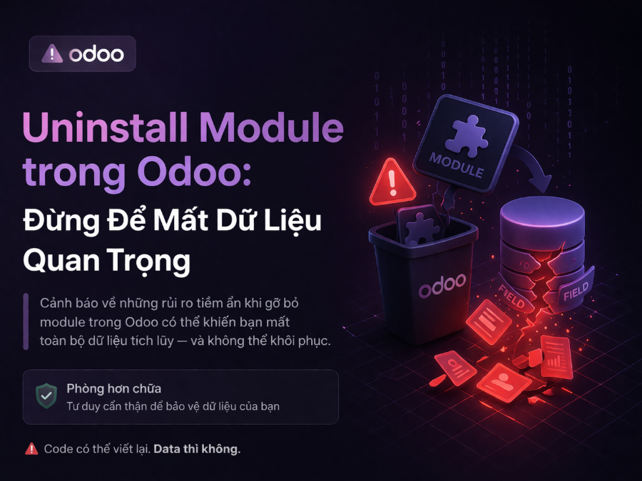 Một thao tác tưởng chừng đơn giản như Uninstall module trong Odoo có thể dẫn đến những hậu quả nghiêm trọng, ví dụ như mất dữ liệu tích lũy hàng tháng, hàng năm. Điều này xảy ra mà không có nút Undo để khôi phục lại.